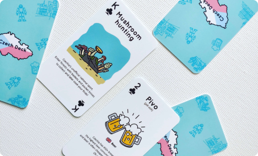An illustrated deck of 54 playing cards highlighting fun Czech