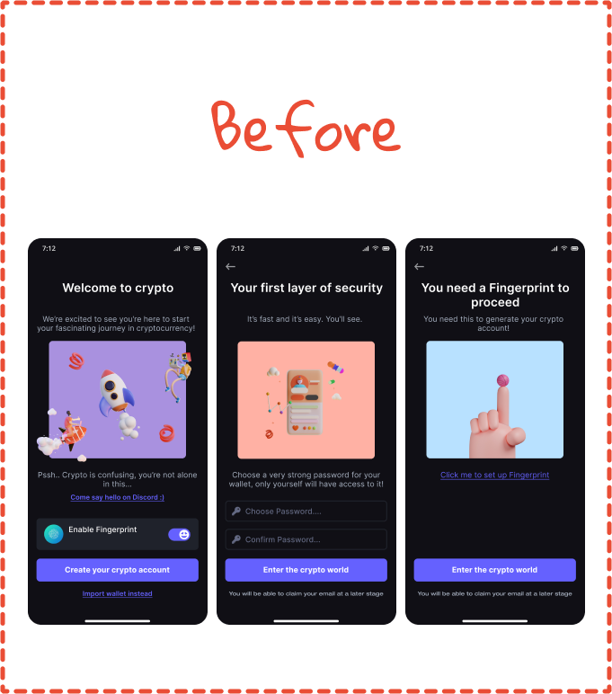 Our goal was to create a clear and friendly sign up flow. Then we wanted users to easily understand where to link online accounts with us.